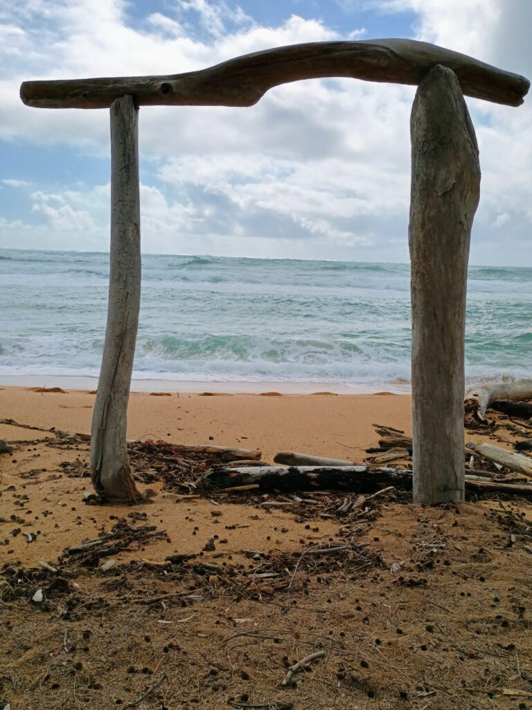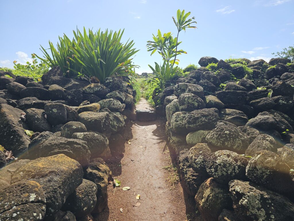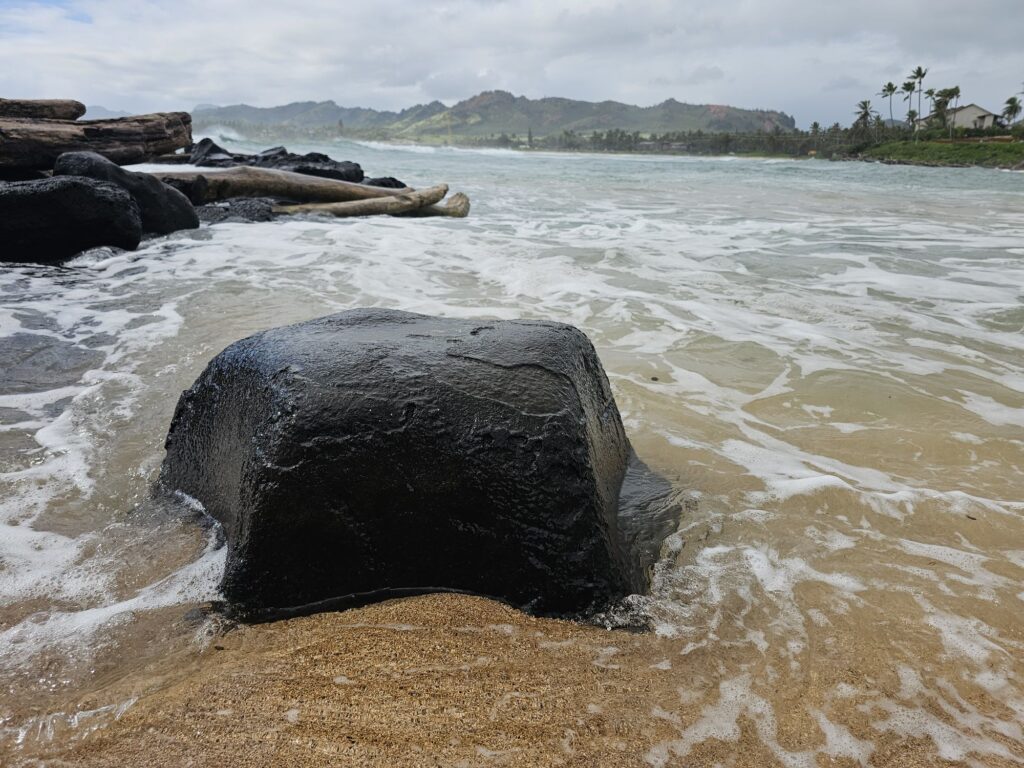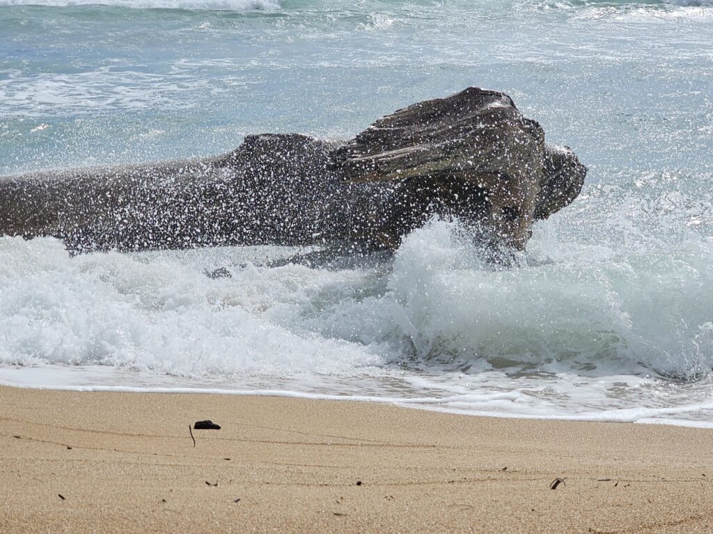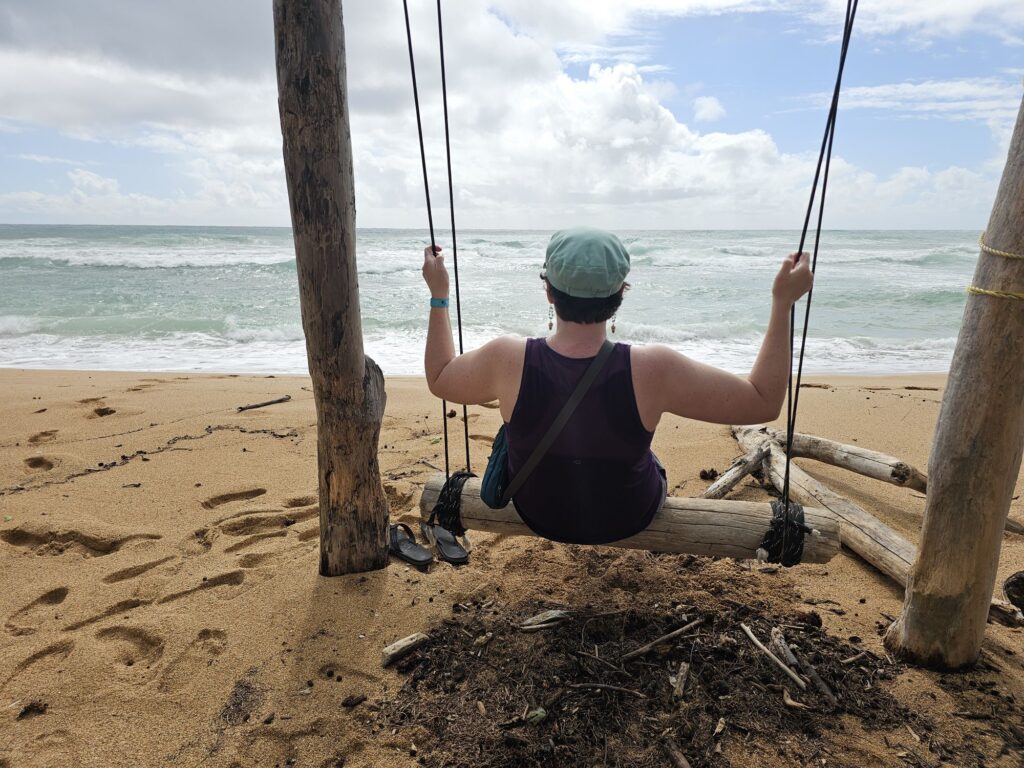 Our next destination was Lydgate Beach Park. This is a place we are hoping to eventually go snorkeling but didn’t think we’d have time to due to the previously planned air tour. A unique feature of this beach is the swimming area has rocks around it making the water calmer than the raging ocean on the other side. It almost looks and functions like an infinity pool. Kim also had some fun drawing in sand.