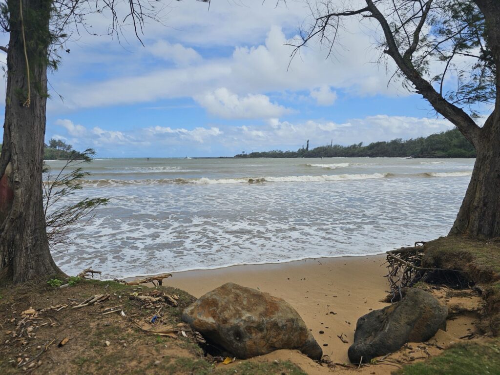 Despite the disappointment of that news, there was no shortage of beautiful things to see and fun adventures to enjoy in Kauai. After the planned lazy morning we skipped swimming in the light rain and left towards Lihue. We drove back to the Coconut Marketplace area to visit Lae Nani Beach and Waipouli Beach and see the Lava Lava Beach Club where we will likely eat dinner sometime later in the week.