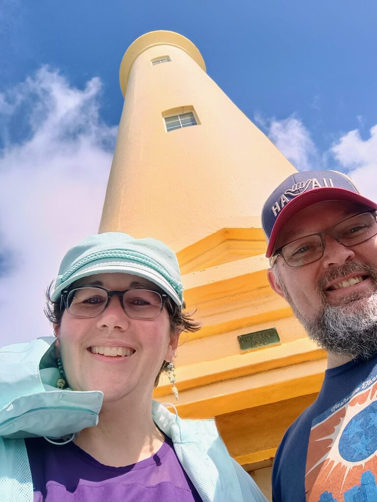 By this time we had learned our air tour was canceled so we had to come up with some alternate plans for the rest of the day. Kim said there was another lighthouse relatively nearby so we set out to that. After a somewhat sketchy drive on mostly dirt roads surrounding a beautiful golf course we arrived at yet another stunning location and got to enjoy views of Ninini Beach from the base of the Ninini Point Lighthouse.