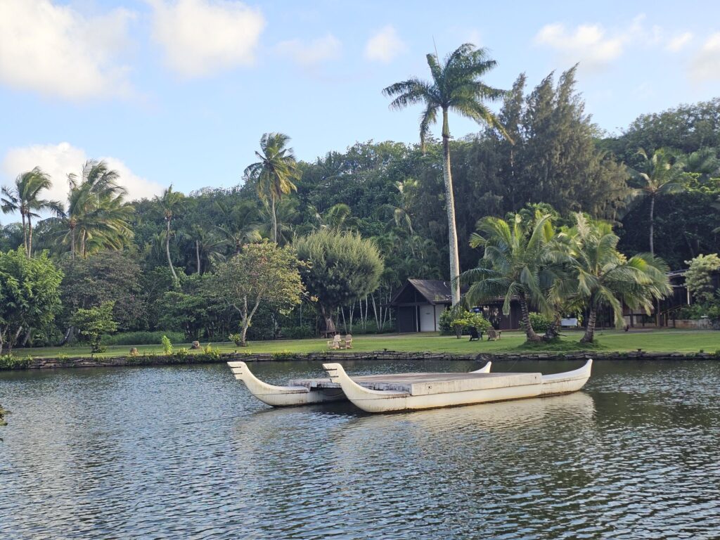 We still had some time to kill before the Luau so did some more shopping at the Ho’omana Thrift Store (found a few local shirts for Kim and the younger kids) and Coconut Marketplace (yet again! Kim just had to get one of their t-shirts and the mug) before heading to the Luau location. When we first arrived we happened to catch a row boat race at the nearby marina (video to come later)