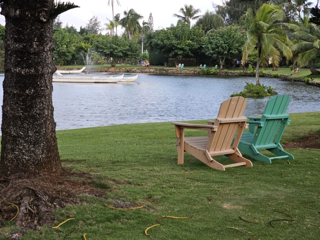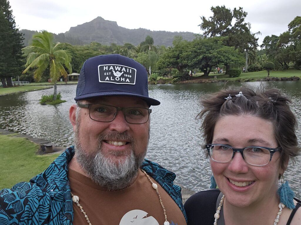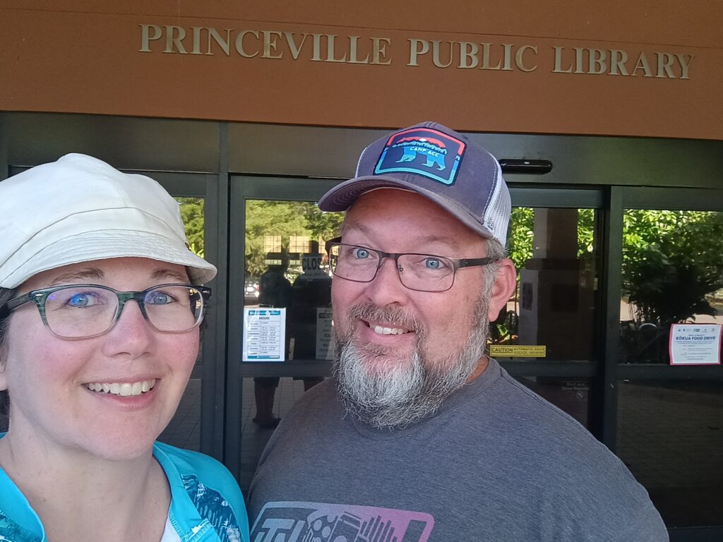 More on the Luau later but first a few things from the earlier part of our day. We set out in the morning and made a short stop in Princeville to explore the nearby library and post office, both of which were unfortunately closed until noon. We love libraries and have been borrowing a mobile hotspot from our home library in Erwin (UCPL) which has been very useful.