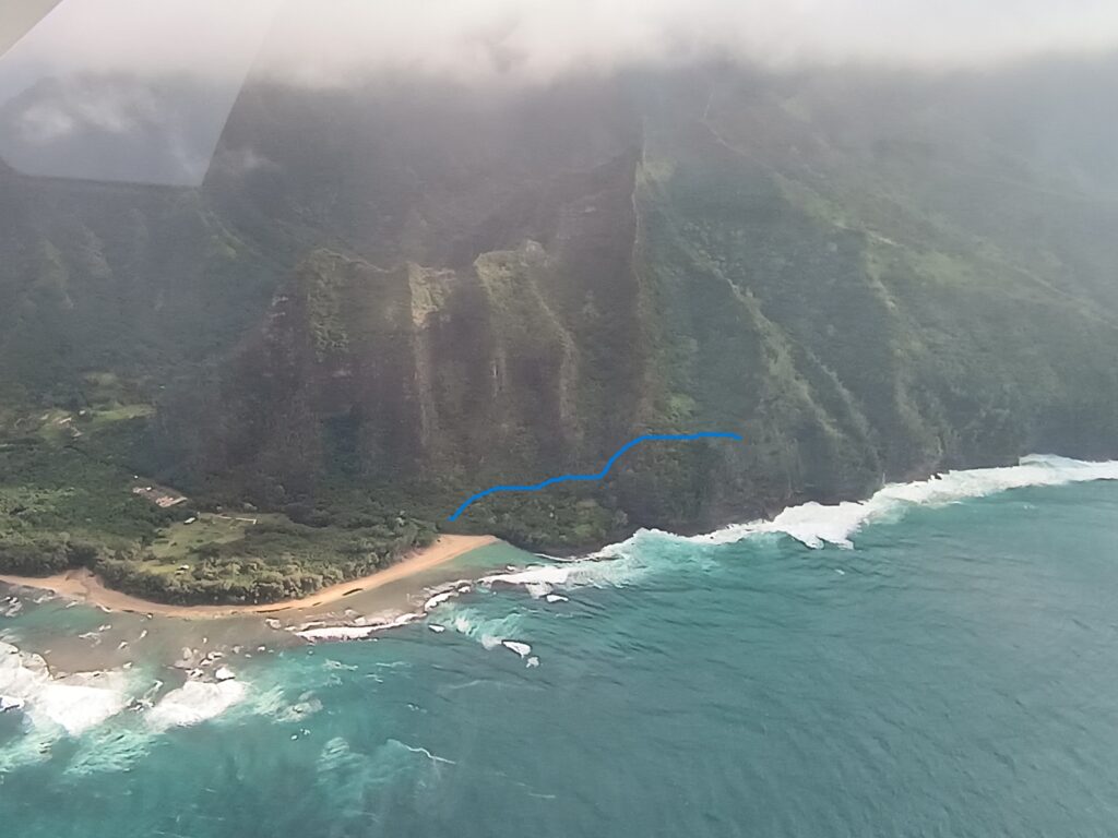 This next picture shows the beach where we started our hike from Tuesday, Ha’ena State Park, and the incredibly steep hike. It was memorable and one of our highlights from the week.