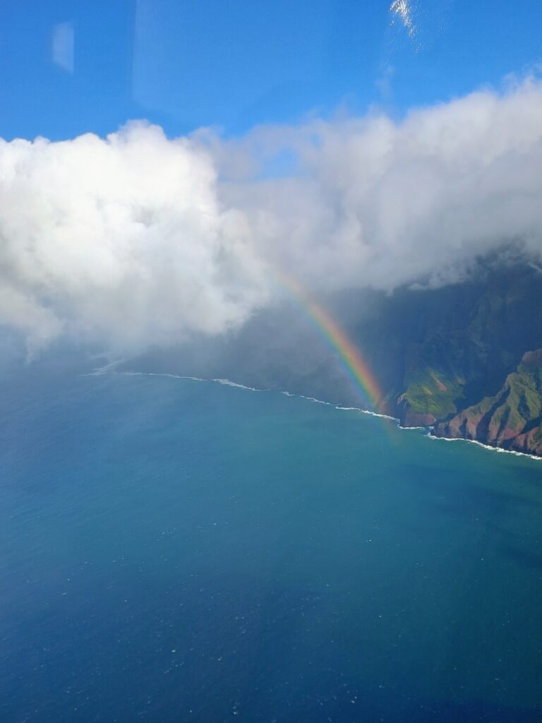 Though the weather of the day (and the week) would not have been described as “perfect”, the clouds only added to the beauty and the rain probably further enhanced many of the waterfalls. We were even treated to a full circle rainbow! Not much else to say about the Na Pali coast rather than let the video speak for itself.