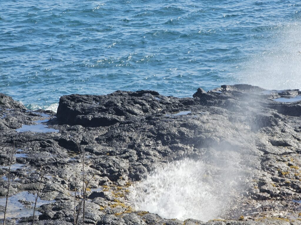 Next we set out towards Spouting Horn, enjoying the view of several smaller beaches and a short stop at the Prince Kuhio park recommend by the Shaka Guide audio tour we listened to throughout the trip. We nearly stopped at the McBryde & Allerton Garden National Tropical Botanical Garden until we learned tickets were $75/person. It looked like a nice place but by this point in the trip we weren’t sure we wanted to spend the time or money on that without knowing more about it. Spouting Horn was interesting and a quick stop, but not especially impressive compared to other things we had seen.